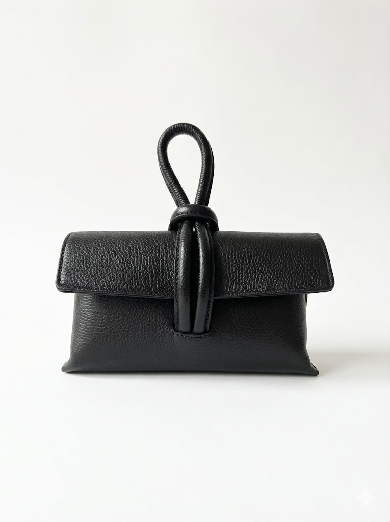 Crafted in Italy from authentic leather, this rectangular bag is defined by its elegant knotted handle and modern proportions. A versatile essential that balances sophistication and ease, designed to complement any wardrobe.